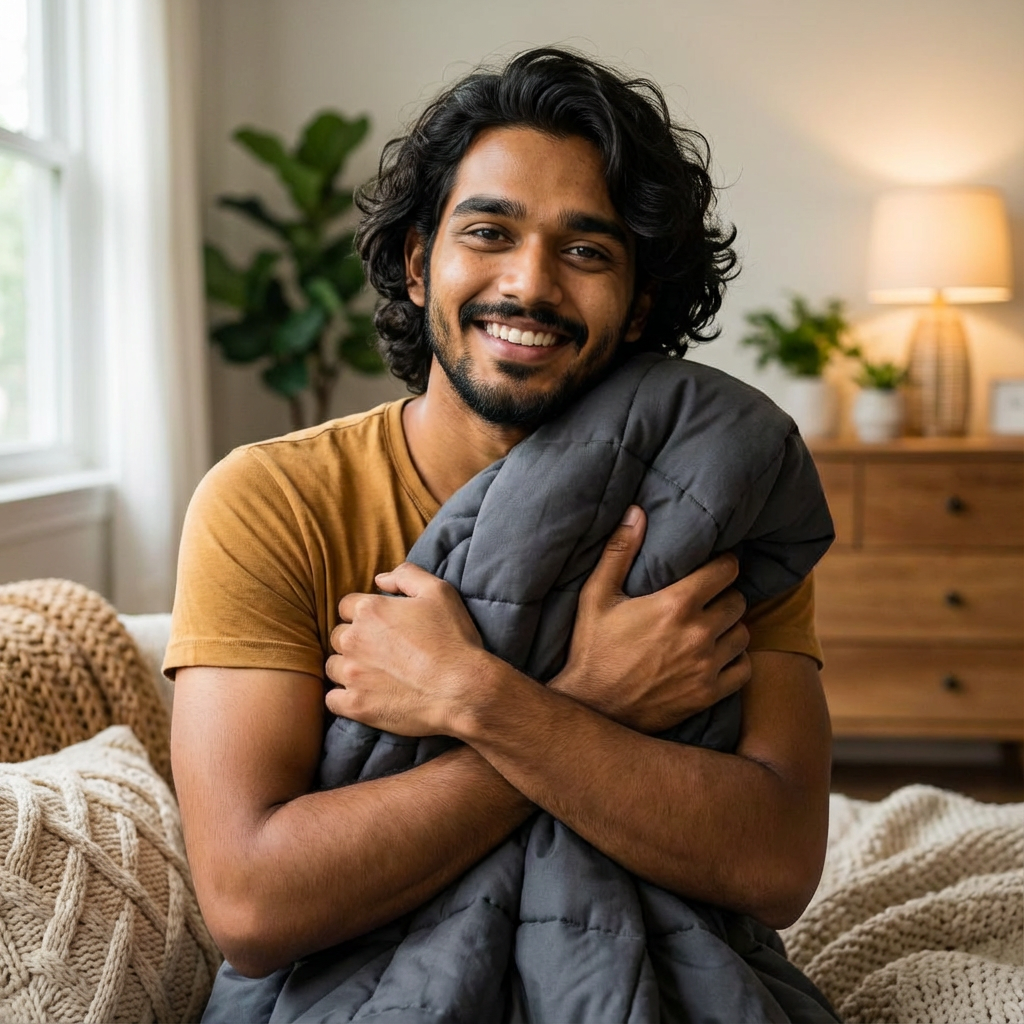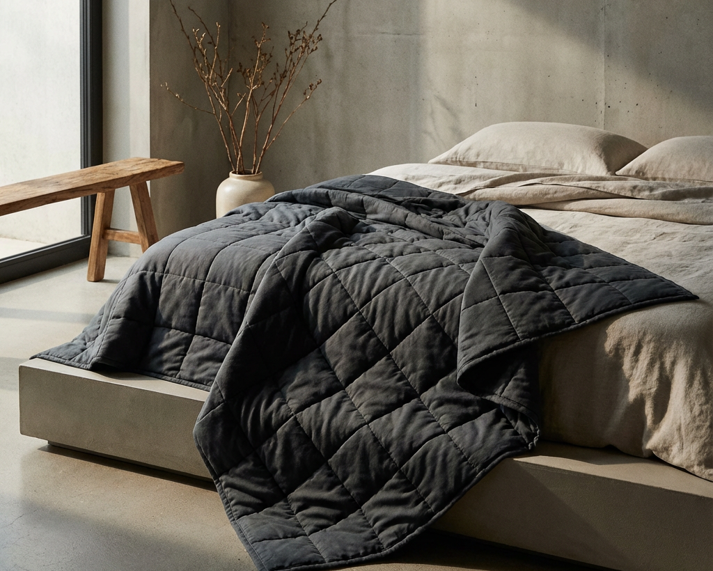 Die Gewichtsdecke schafft hier Abhilfe: Durch ihren sanften, gleichmäßigen Druck beruhigt sie das Nervensystem, entspannt die Muskeln und bringt den Körper in einen Zustand natürlicher Ruhe.